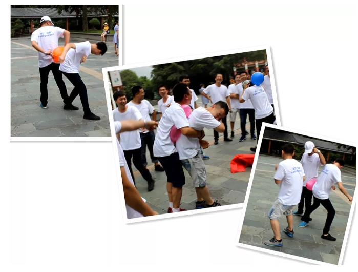 “擠壓氣球”游戲,一展團隊風采,大家齊心協(xié)力壓氣球,“啪啪啪”聲響如雷,笑成一片。