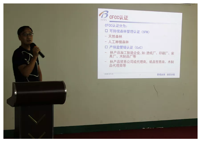 伽立實業(yè)集團邀請來自專業(yè)機構(gòu)的培訓(xùn)講師,任職PEFC和CFCC認證相關(guān)崗位長達數(shù)十年經(jīng)驗,對營銷中心及相關(guān)部門進行PEFC和CFCC認證培訓(xùn)指導(dǎo)。