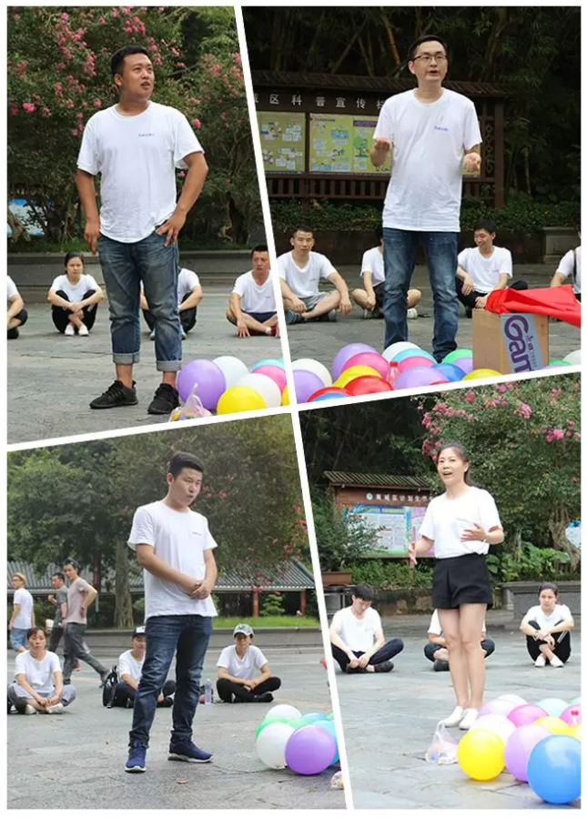 “擠壓氣球”游戲,一展團隊風采,大家齊心協(xié)力壓氣球,“啪啪啪”聲響如雷,笑成一片。