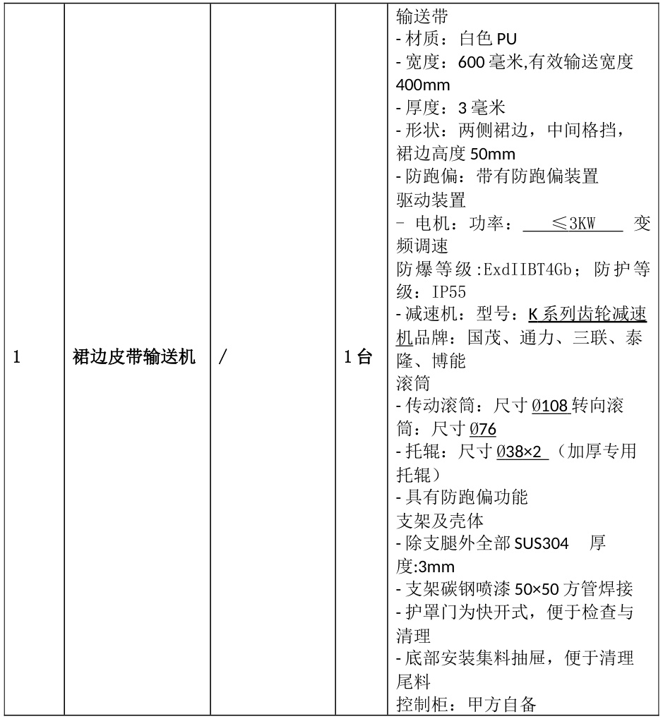 安全防護(hù):標(biāo)配防跑偏、防撕裂、拉繩急停裝置,溜槽傾角≥60°防堵料
